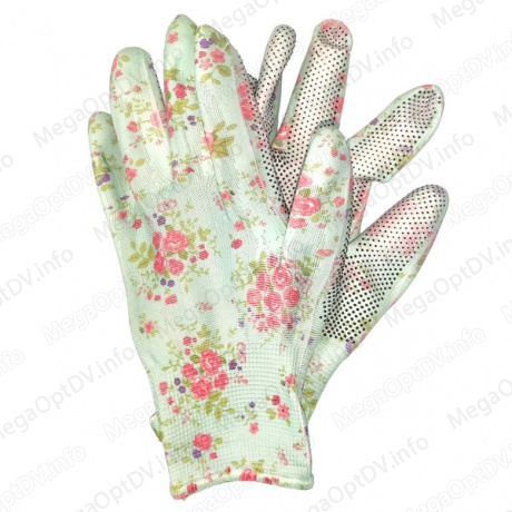 Перчатки нейлоновые с резиновой точкой полиуретан принт цветы